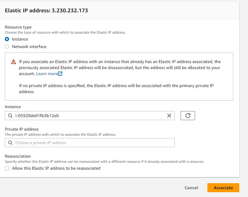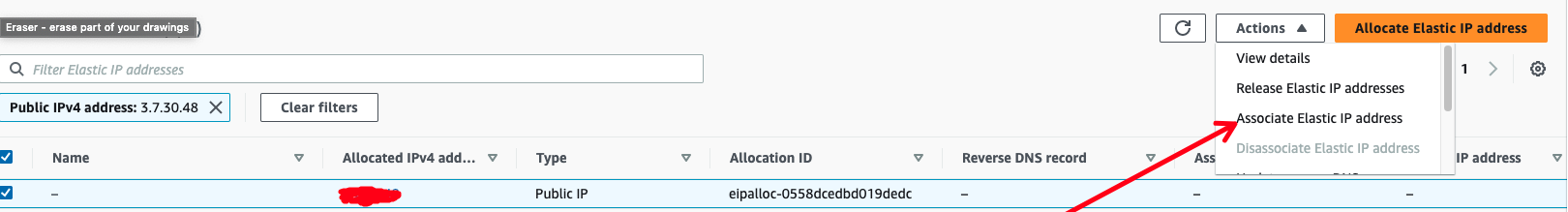 Once you allocate an Elastic IP address next step is to Associate Elastic IP address with you instance