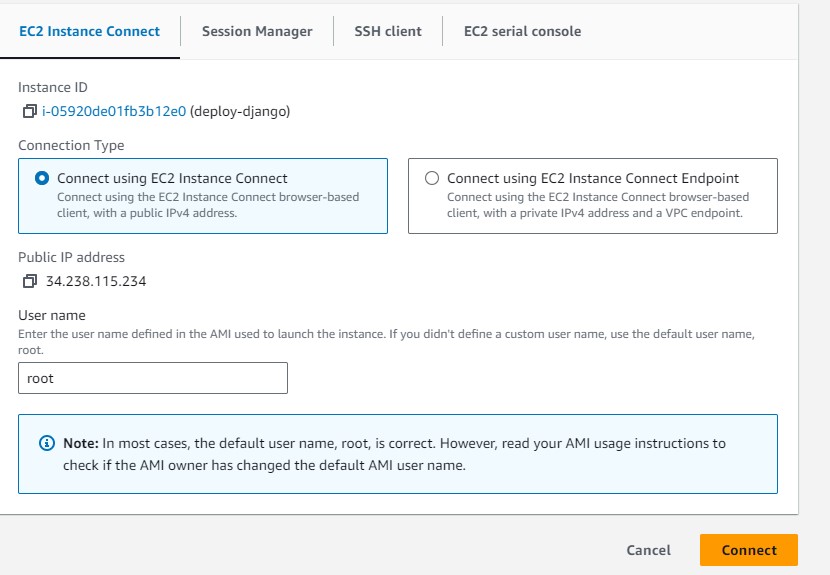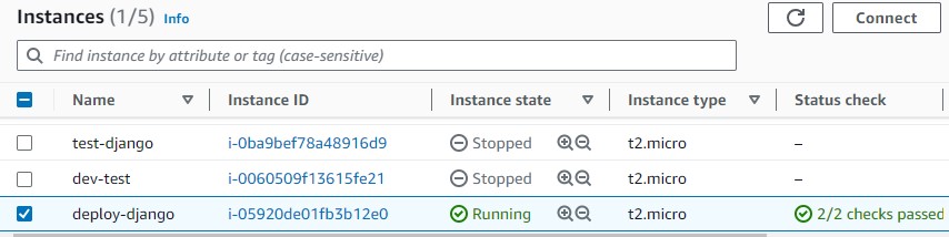 then you can test your systemin your browser by running command like python manage.py runserver 0.0.0.0:800 and run in the browser by ipv4_of_your_instance:8000 port.