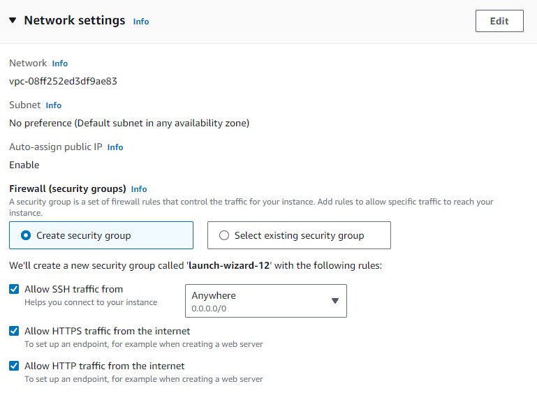 Allow SSH, HTTP, HTTPS traffic and any other port you want to open.