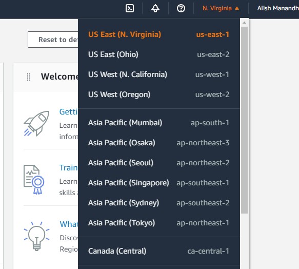 The first thing we need to do is to select Region where we want to set up our EC2 Machine , select one according to requirements